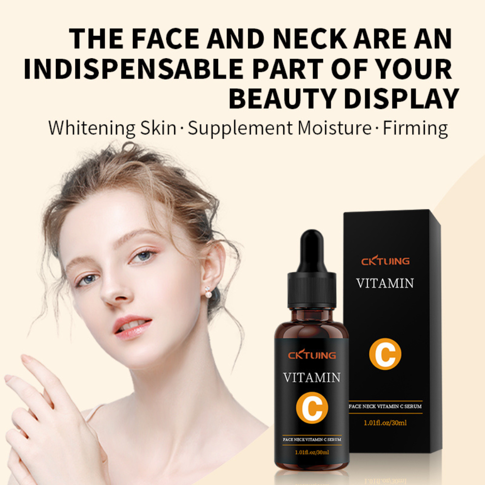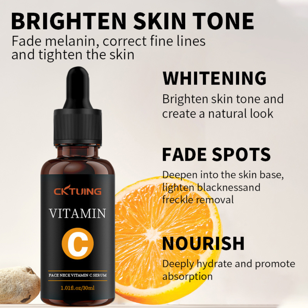 CKTUING Vitamin C Serum is a powerful skin care solution designed to brighten skin tone, fade dark spots and freckles, and correct fine lines. Infused with a potent dose of pure Vitamin C, this face and neck serum penetrates deep into the skin to fade melanin, reduce hyperpigmentation, and promote a natural, radiant glow.