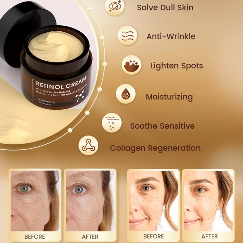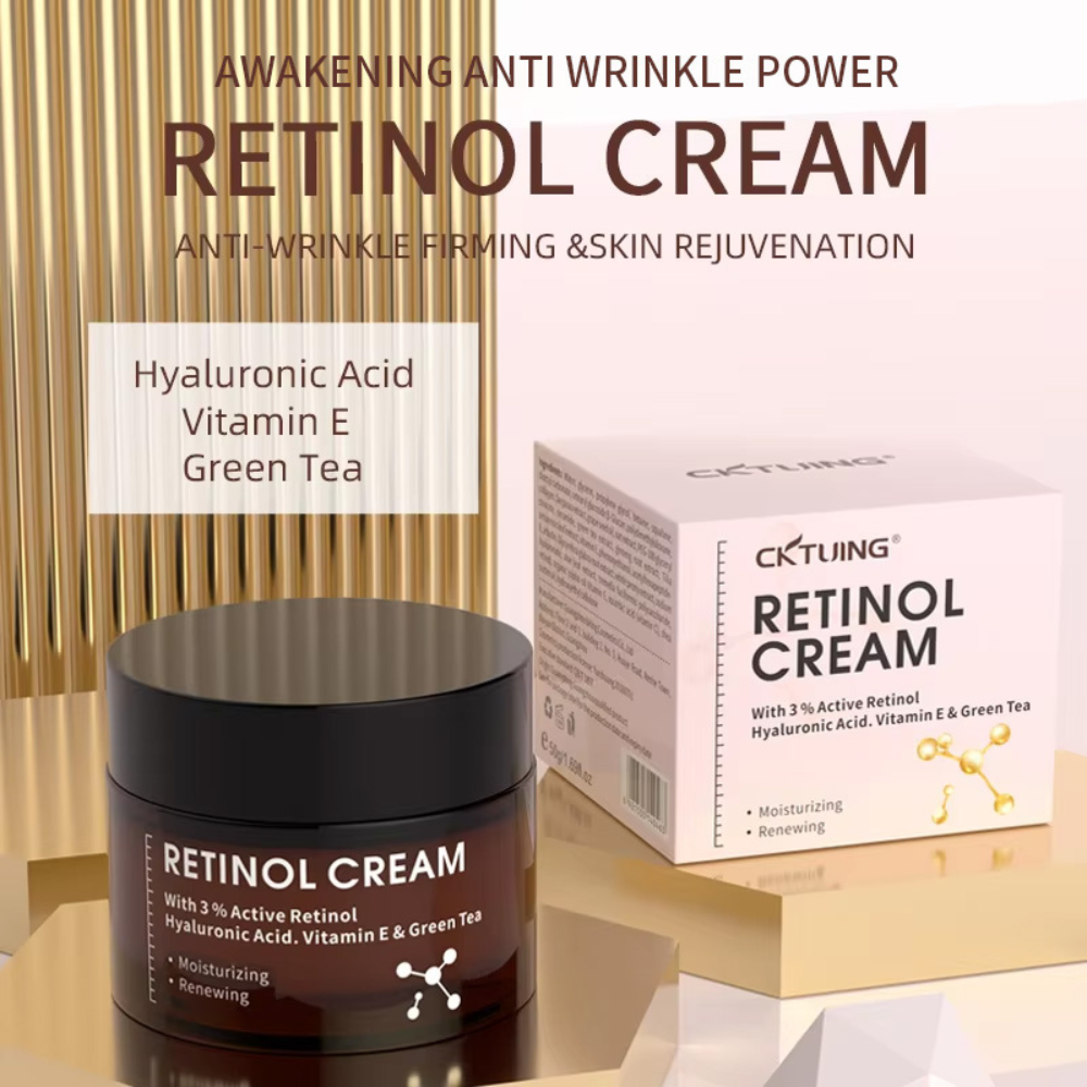 Discover the secret to youthful, glowing skin with CKTUING Retinol Cream. Our premium formula combines the power of Retinol (Vitamin A) with skin-loving ingredients like Hyaluronic Acid and Vitamin E to target signs of aging, such as fine lines, wrinkles, and uneven skin tone. This rich, non-greasy night cream provides intense hydration while working overnight to reveal smoother, healthier skin by morning.
